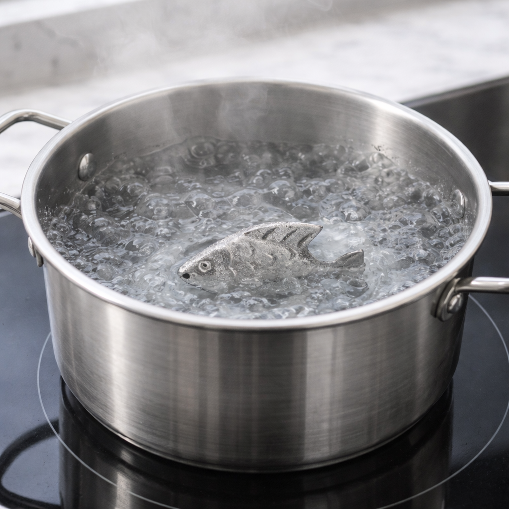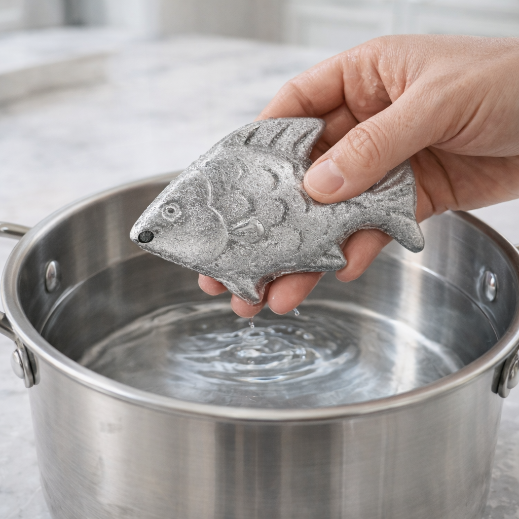 El Iron Fish es una pieza de hierro fundido de grado alimenticio que, al hervirse con las comidas o agua junto con unas gotas de limón, libera pequeñas cantidades de hierro natural mediante una reacción entre la acidez y el metal, permitiendo que el cuerpo absorba parte de ese hierro como un complemento dietético suave. Su uso constante puede ayudar a mantener los niveles de energía y reducir la fatiga relacionada con la baja ingesta de hierro, ofreciendo una alternativa sencilla, reutilizable y práctica a otros métodos de suplementación, sin alterar el sabor de los alimentos si se usa correctamente.